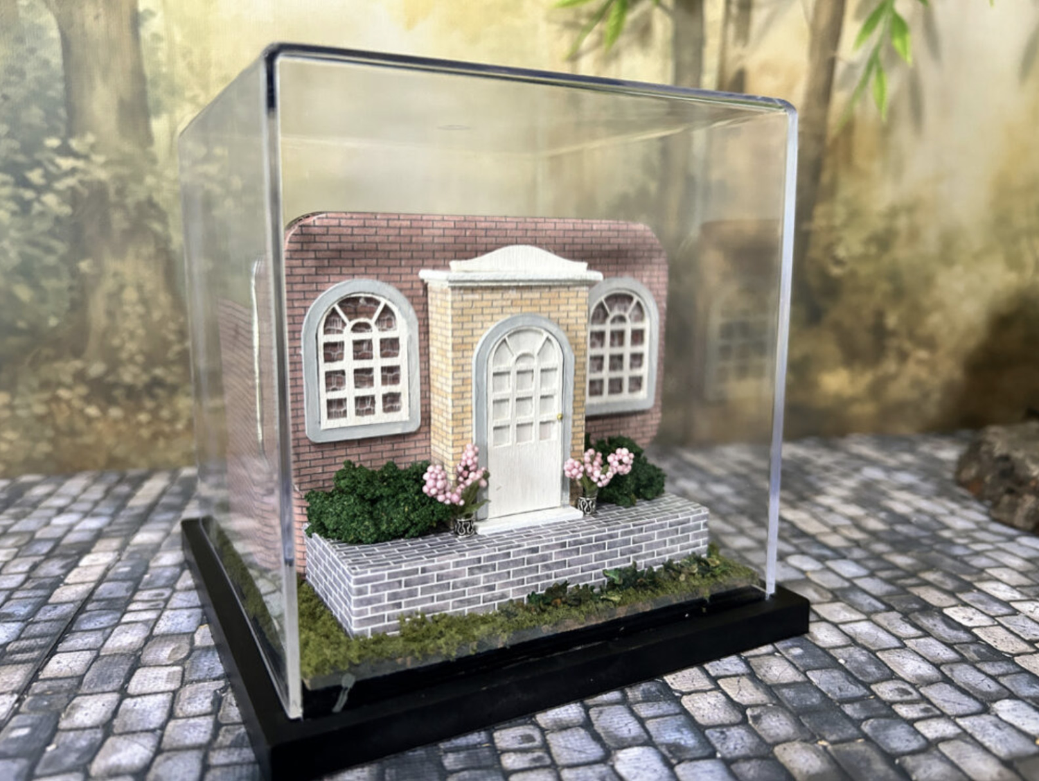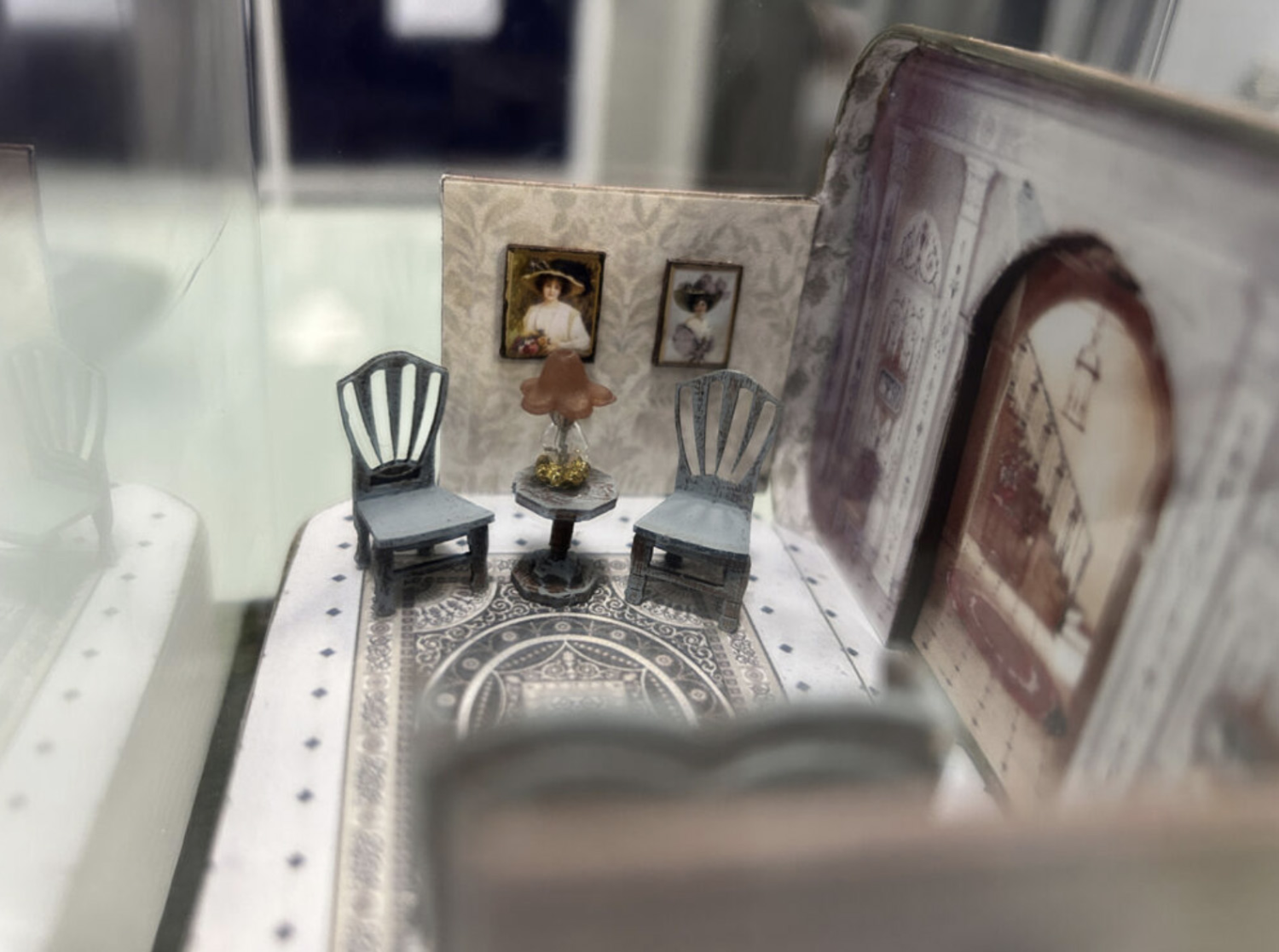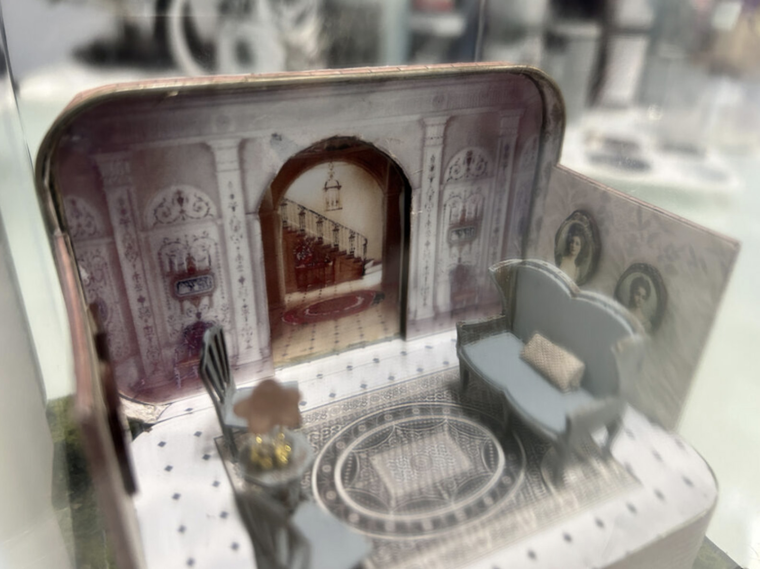 This was a lot of fun and the first time I’ve made something in an Altoids tin. The only changes I made were with the couch (the kit one had a back like the chairs, but it broke on me), using a little kit from Petite Properties, and adding a false wall at the back to give the room more dimension.