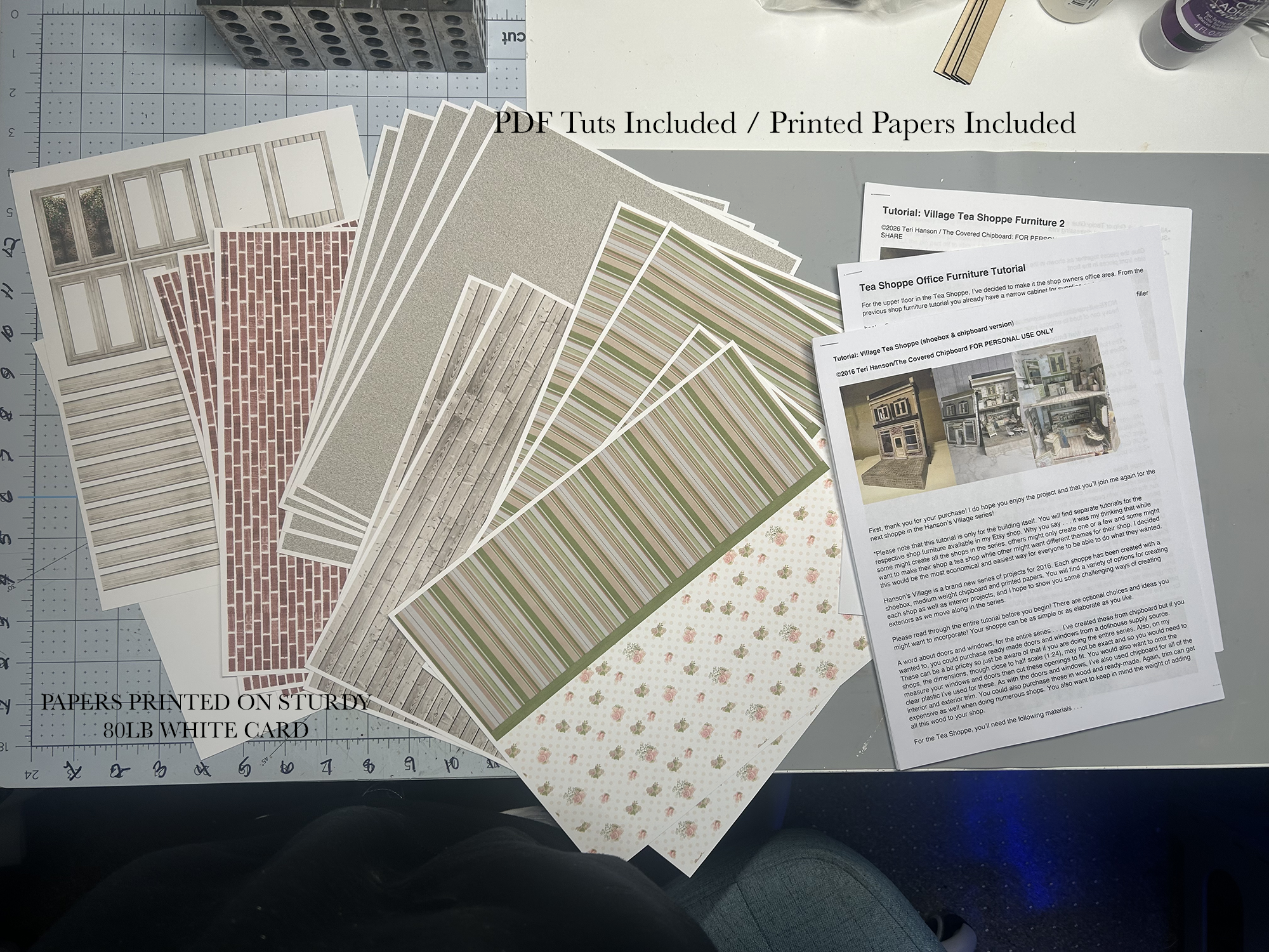 Try something different and create a miniature Tea Shoppe or any theme shop using my PDF file tutorials and printed papers. This project was created for use with a Cricut-type cutting machine or for cutting by hand. The project is not suitable for Laser Cutting Machines!