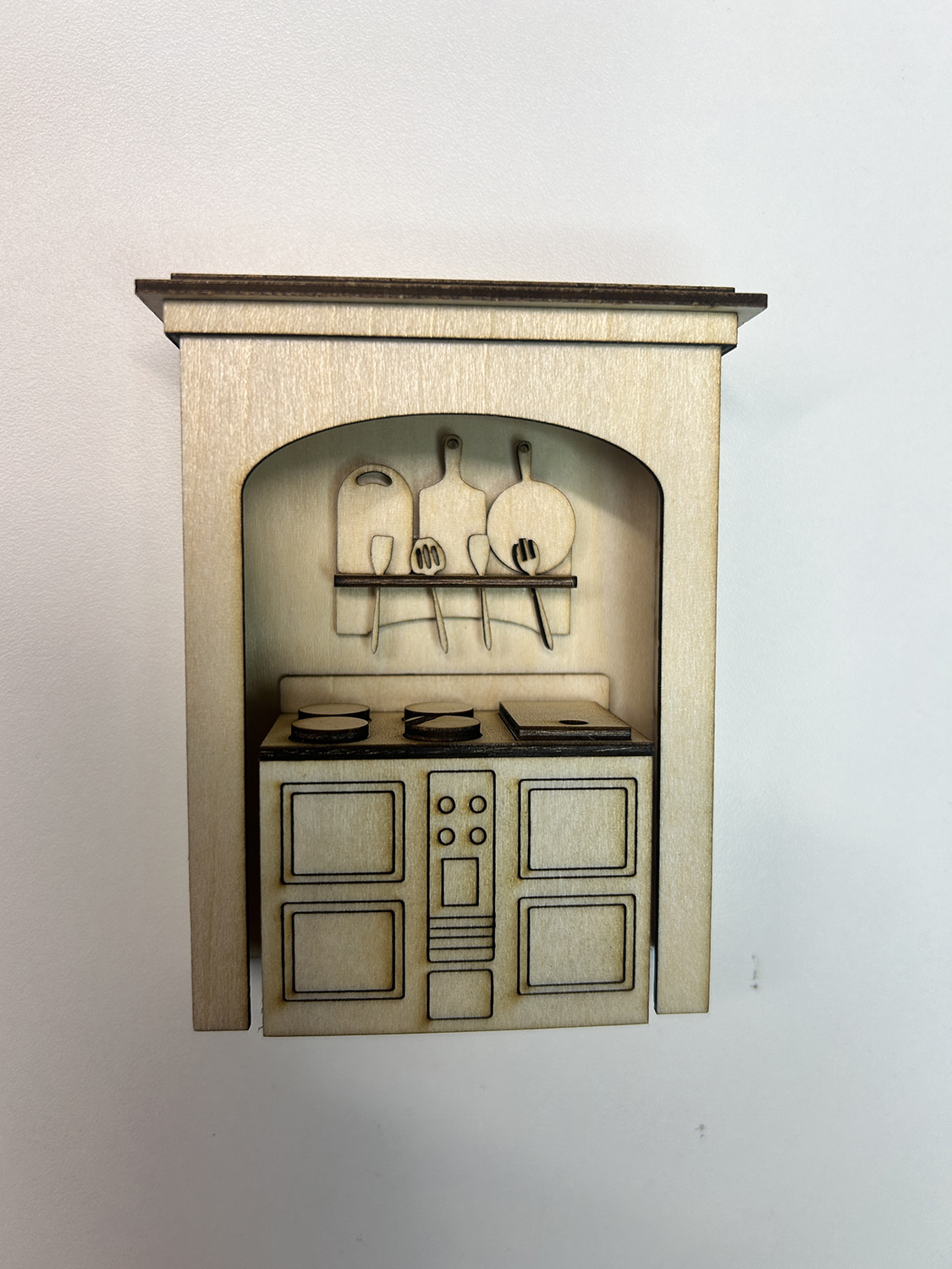 Add a bit of vintage charm to your Dollhouse kitchen with this unique Cook’s Stove kit. This laser-cut wood kit features a beautifully crafted inset stove and tall surround that brings a sense of nostalgia and life to your miniature space. Made from high-quality wood, this kit is not only durable but also perfect for staining or painting, allowing you to customize it to match your dollhouse’s aesthetic.